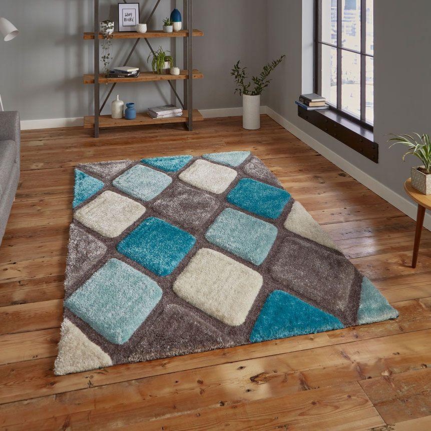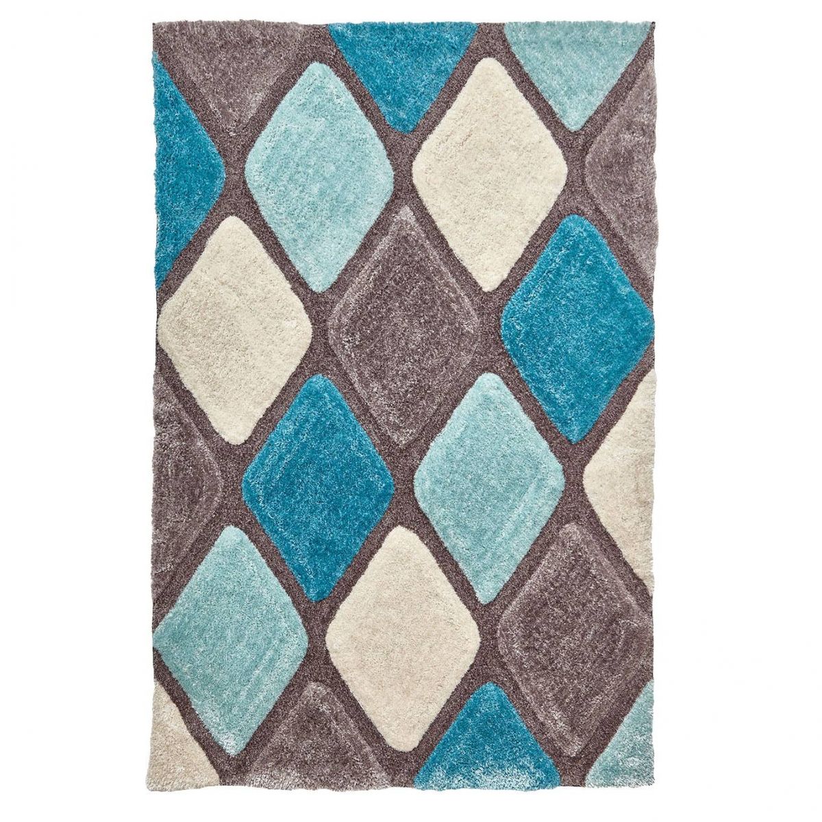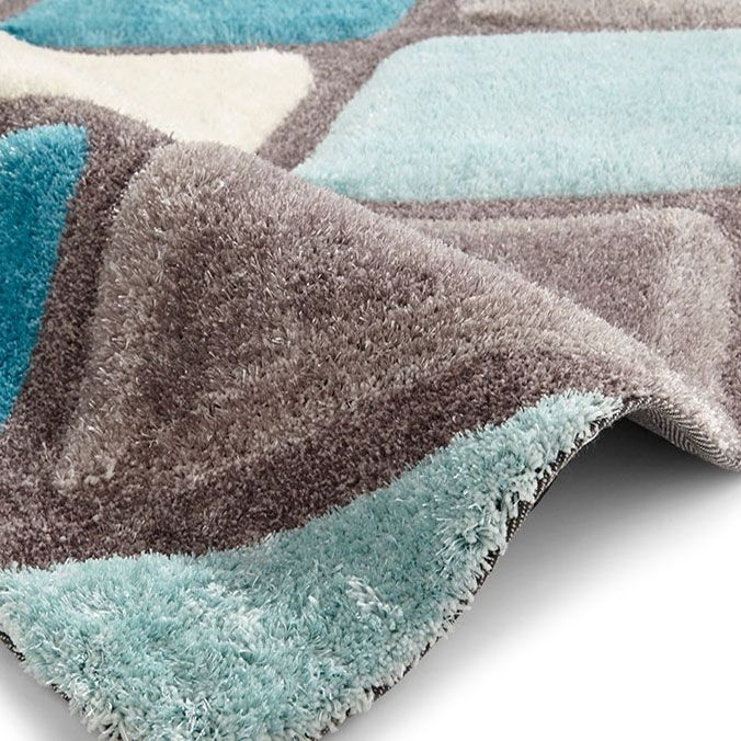 Diamond Tones 3d Carved Rug in Teal Blue and Grey