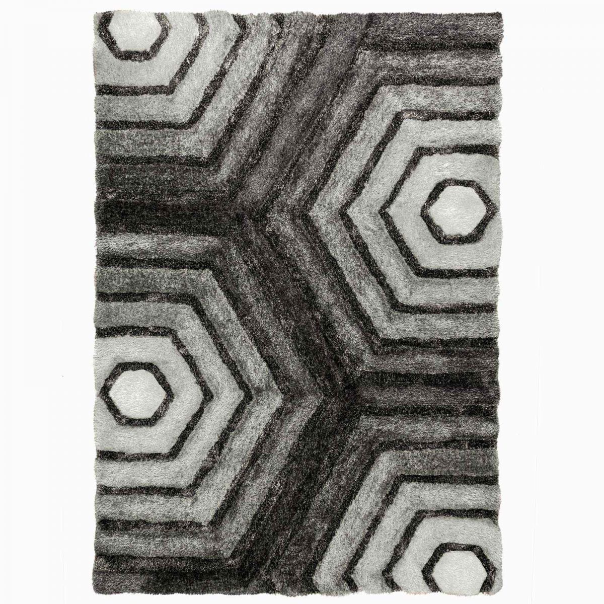 Hexagon Grey & Black Rug with 3D Carved Effect