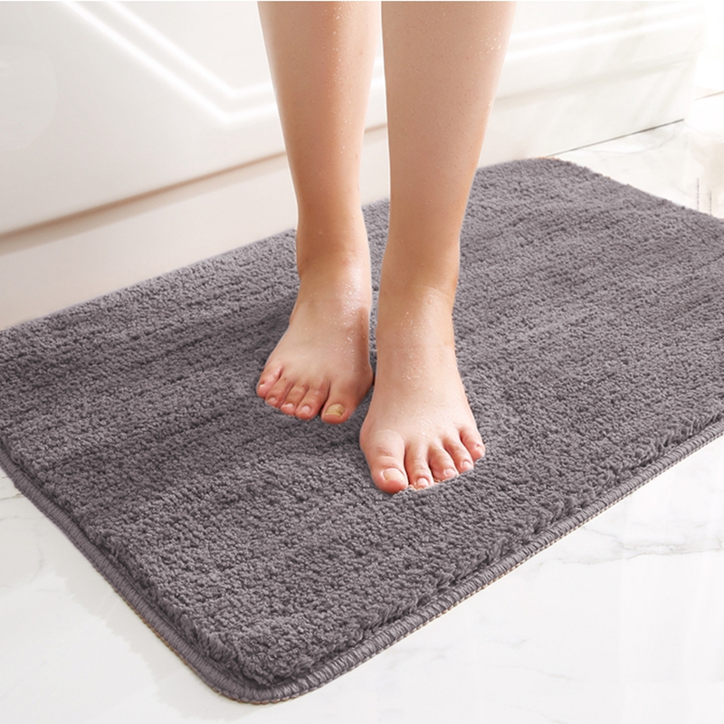 Microfiber Solid Shag Anti-slip Bathroom Mat Gray